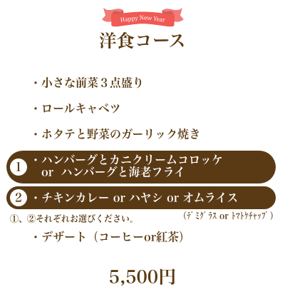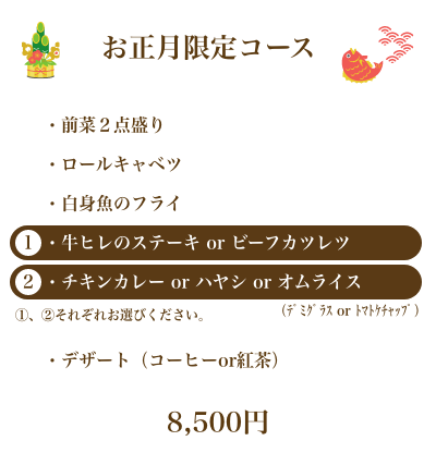 - 2025年12月26日1月2日〜5日までアラカルトは別にコースをご用意しました。